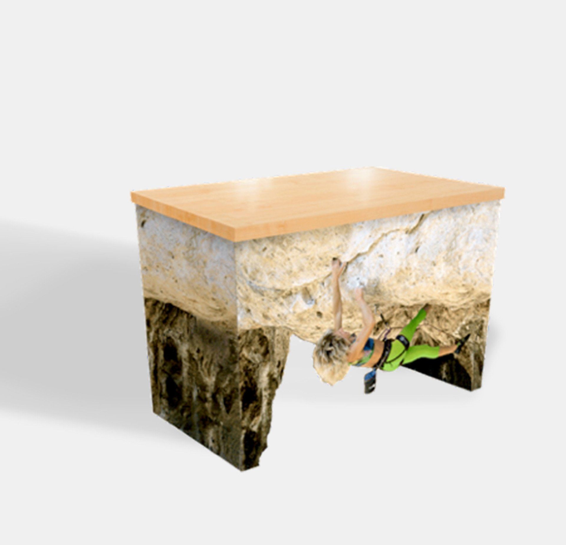 Die Verbindung von echten Tischplatten mit einem ideal gestaltbaren Material, der Wellpappe, ermöglicht günstigen Herstellungspreis.